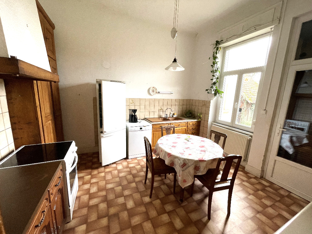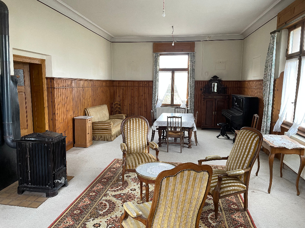 MUTTERSHOLTZ: En exclusivité, "Maison de Maître" (construction de 1929) bâtie sur un terrain de 18.50 ares comprenant 9 pièces pour une superficie habitable de 222m². RDC, 5 pièces, cuisine,, salle d'eau le tout avec une hauteur sous plafond de 3.50m. A l'étage, 5 pièces (3m de hauteur sous plafond), salle de bains et une terrasse de 55m². Cave, chauffage gaz, grenier, parquets, dépendance. Maison lumineuse avec de grandes ouvertures, nécessitant des travaux. Laisser vous séduire par son charme et son incroyable potentiel avec la possibilité de créer 2 logements pour 2 familles.