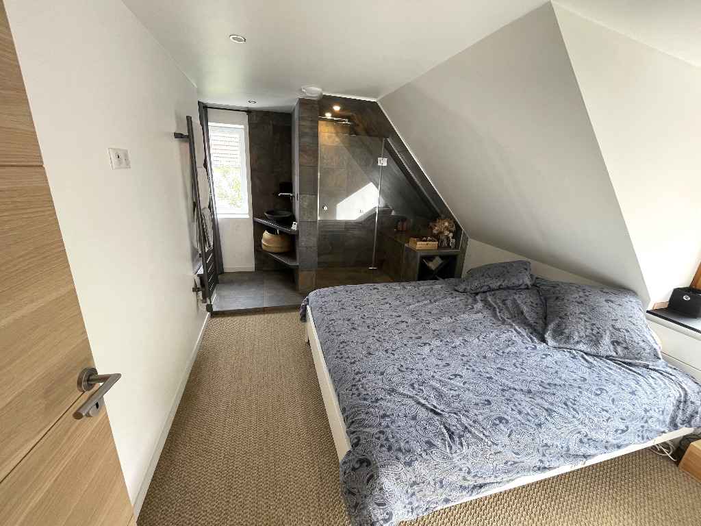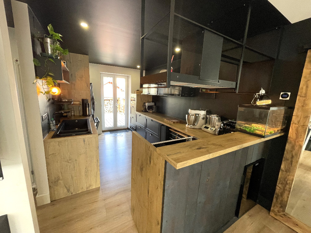 ORBEY: Maison entièrement rénovée bâtie sur un terrain de 2.75 ares env. se composant: D'une habitation principale avec cuisine équipée ouverte sur salon, salle d'eau, chauffage PAC. A l'étage 3 chambres dont une suite parentale, mezzanine. Et d'un gîte attenant 2 pièces (loué 1000€/mois) avec beaucoup de caractère! Garage dépendance, cave, cheminée, poêle à granulés, 2 terrasses. Ensemble en bel état avec beaucoup de charme!