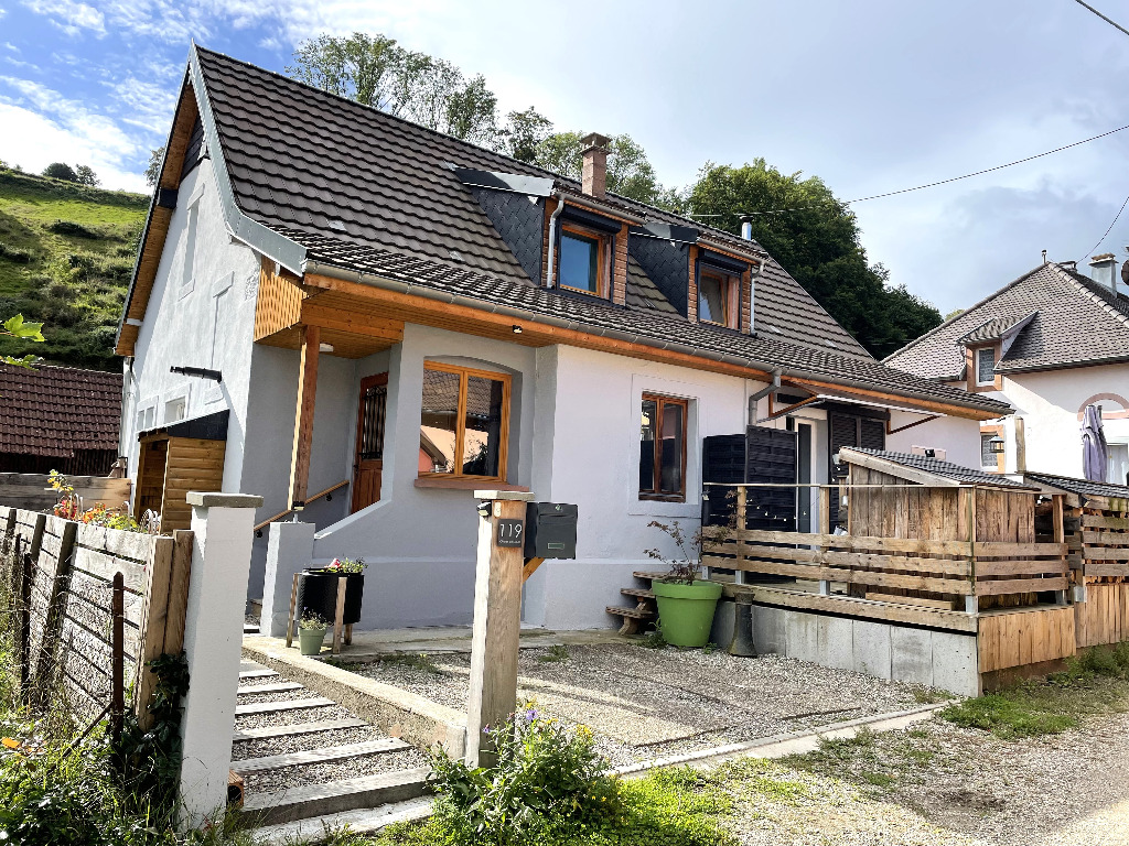ORBEY: Maison entièrement rénovée bâtie sur un terrain de 2.75 ares env. se composant: D'une habitation principale avec cuisine équipée ouverte sur salon, salle d'eau, chauffage PAC. A l'étage 3 chambres dont une suite parentale, mezzanine. Et d'un gîte attenant 2 pièces (loué 1000€/mois) avec beaucoup de caractère! Garage dépendance, cave, cheminée, poêle à granulés, 2 terrasses. Ensemble en bel état avec beaucoup de charme!