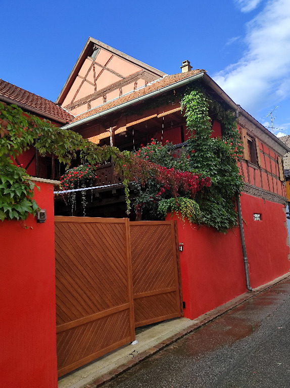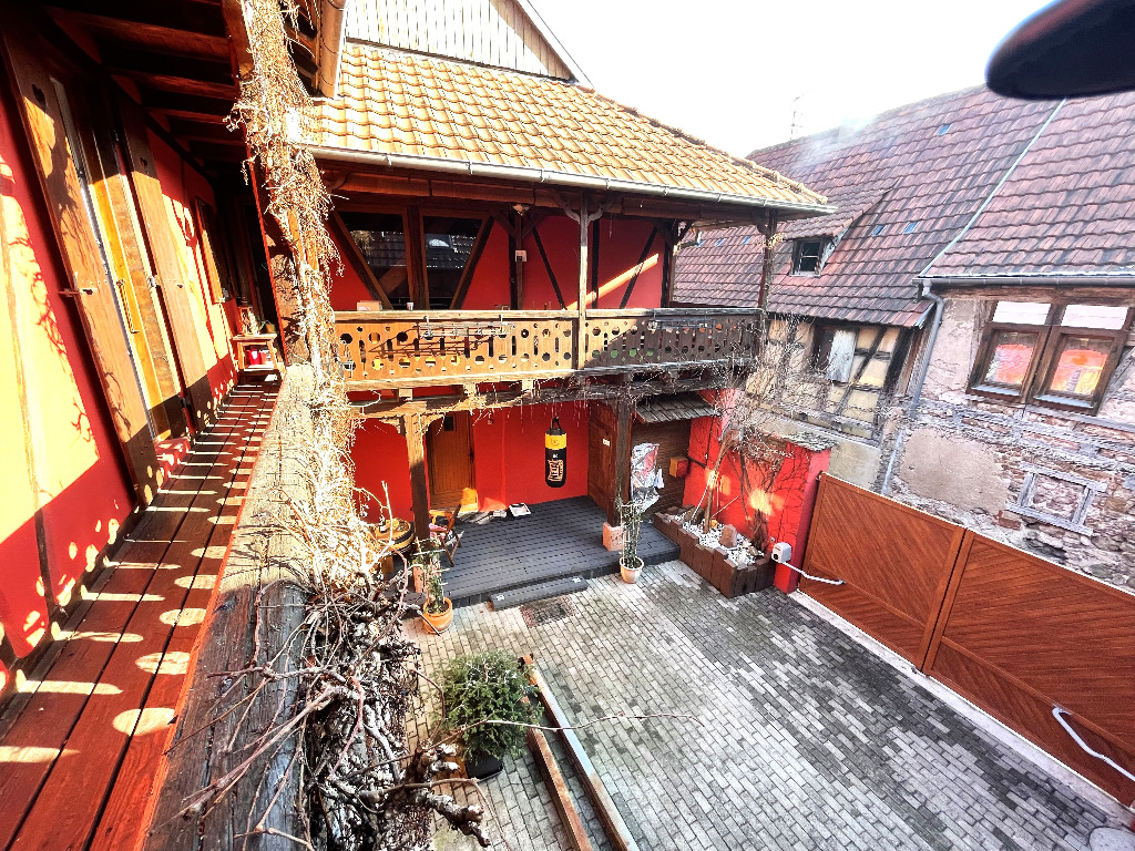 SAINT-HIPPOLYTE: Au coeur du village maison Alsacienne à colombages de 250m² bâtie sur un terrain de 2.8 ares comprenant: Au RDC, un charmant gîte de 50m², buanderie+chaufferie(gaz). A l'étage, Vaste salon séjour avec cheminée, cuisine équipée, chambre avec dressing, bureau, salle d'eau (douche italienne), terrasse. Au 2ème étage, 2 chambres, coin salon, salle d'eau. Superbe cour intérieure surplombée d'un balcon, grand garage-atelier(porte élec), dépendance. De vastes combles restent à aménager!! Maison avec beaucoup de Charme!!